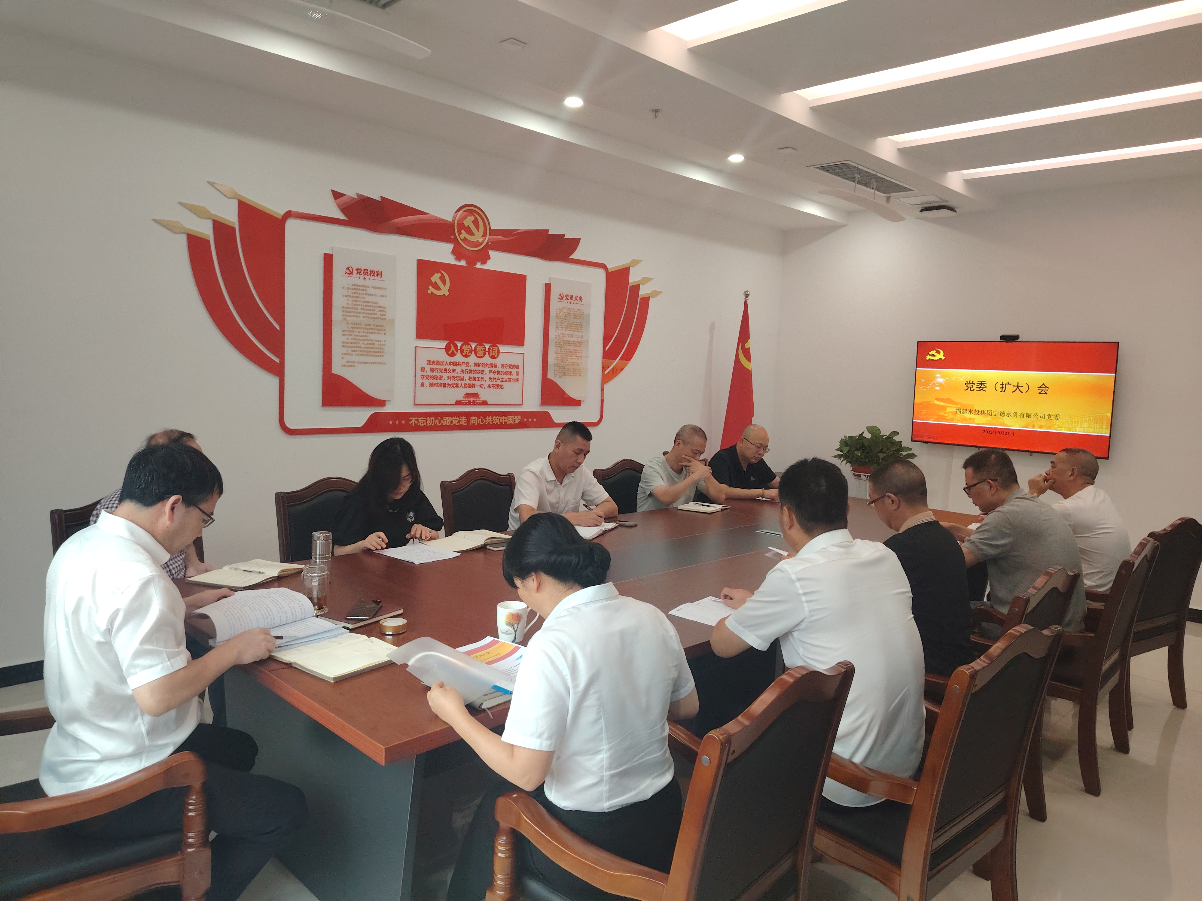 9月23日,寧德水務公司召開黨委擴大會議,傳達學習習近平總書記關于深入貫徹中央八項規(guī)定精神學習教育的重要指示精神和黨中央、省委黨的建設工作領導小組會議精神、集團公司、中閩水務集團深入貫徹中央八項規(guī)定精神學習教育工作總結會精神;總結公司深入貫徹中央八項規(guī)定精神學習教育,研究部署鞏固拓展學習教育成果、鍥而不舍落實中央八項規(guī)定精神、推進作風建設常態(tài)化長效化工作。公司黨委書記、董事長、總經理周善敏主持會議并講話。
